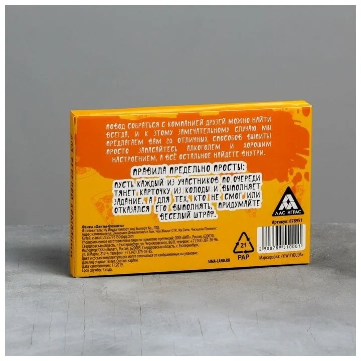 Купить игра для компании "фанты буханты" 20 карт от 100 руб. с доставкой до пункта выдачи в Киржаче. Интернет магазин ДекаМаркет. Оплата при получении.